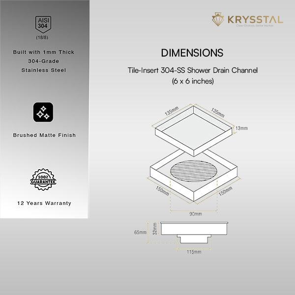 Tile-Insert 304-SS (6"x 6") Floor Drain with Advanced Cockroach Trap