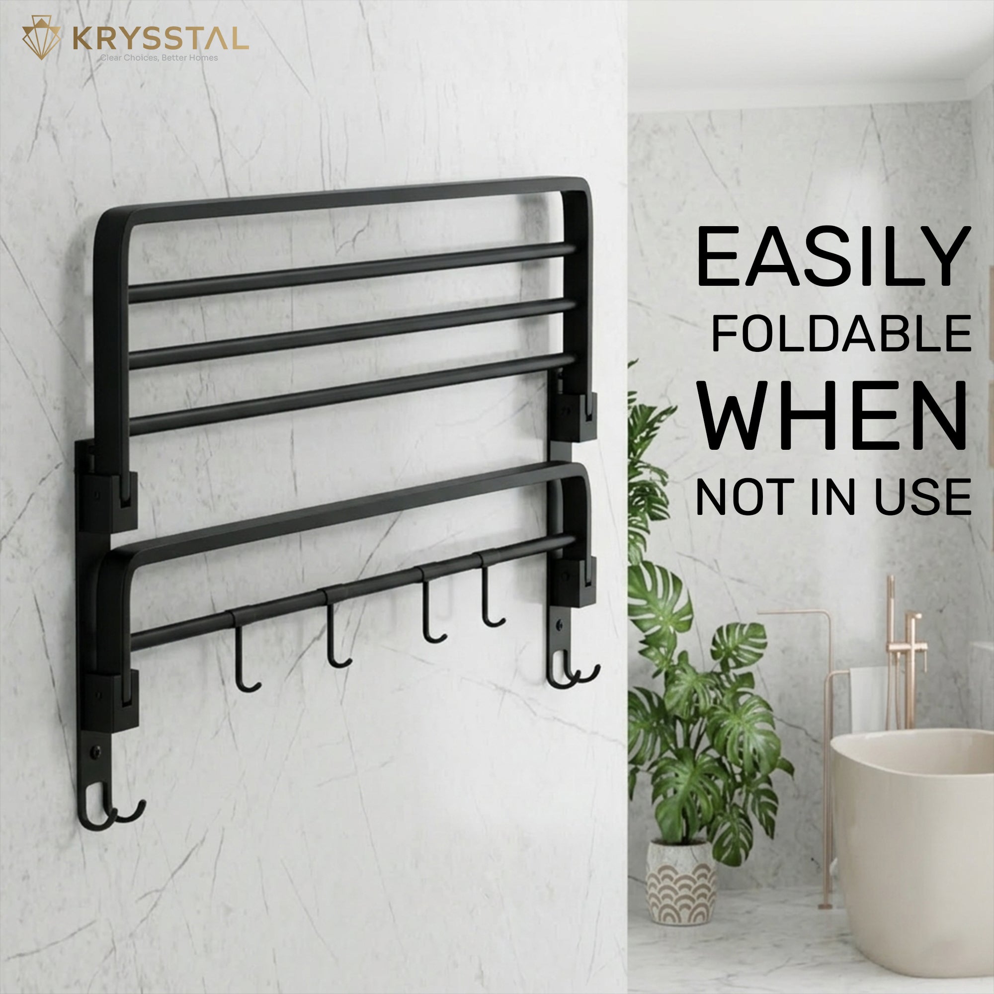 • SPACE SAVING DESIGN: The dual foldable racks are designed to maximize utility while saving space, making them ideal for compact or modern bathrooms.