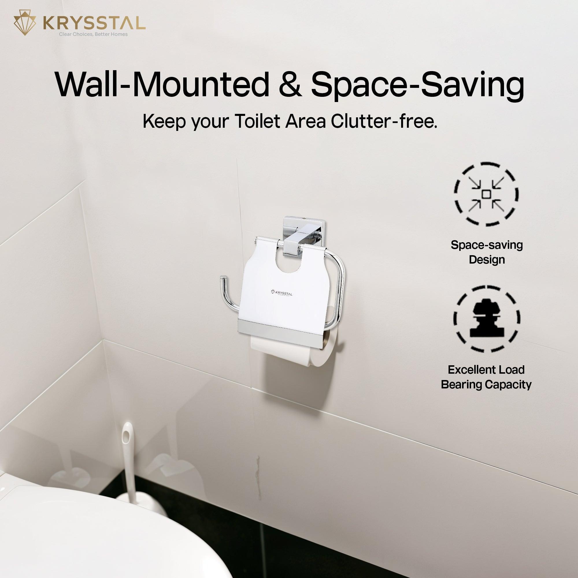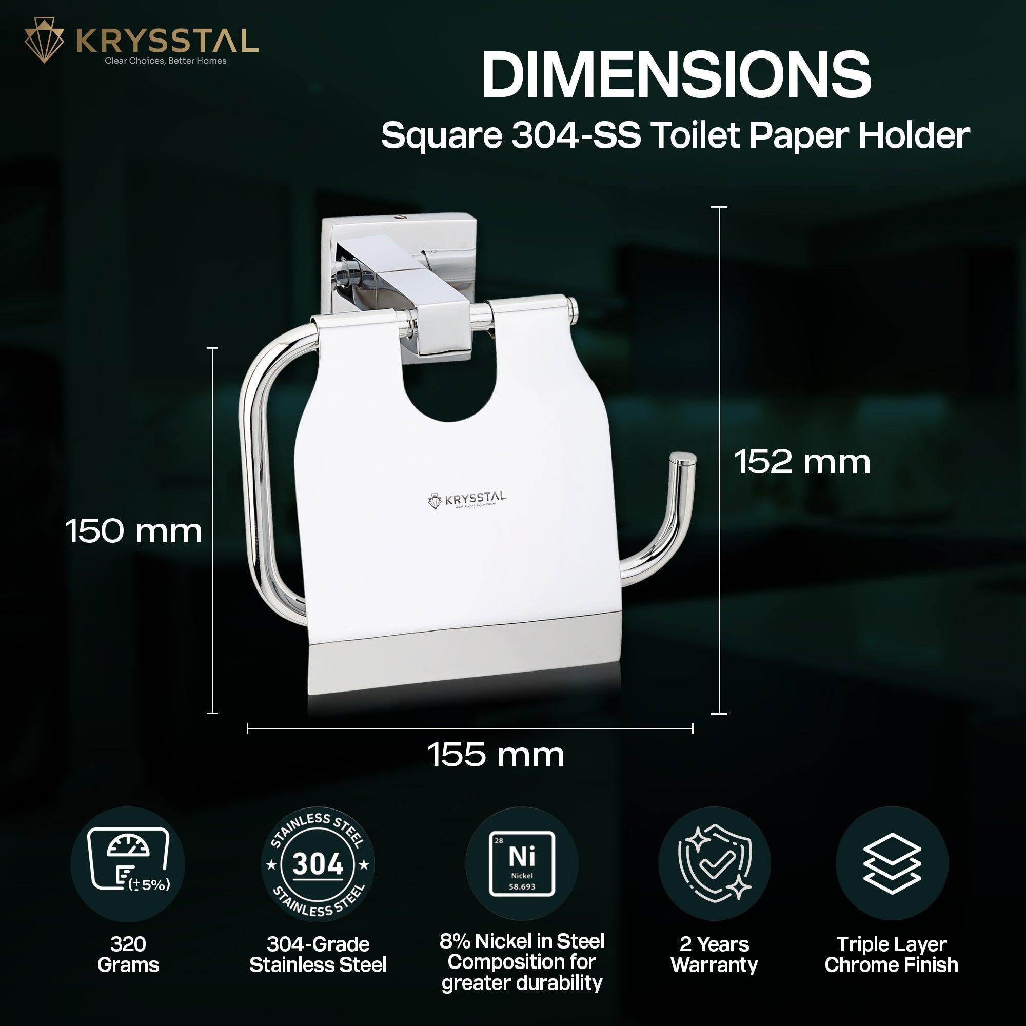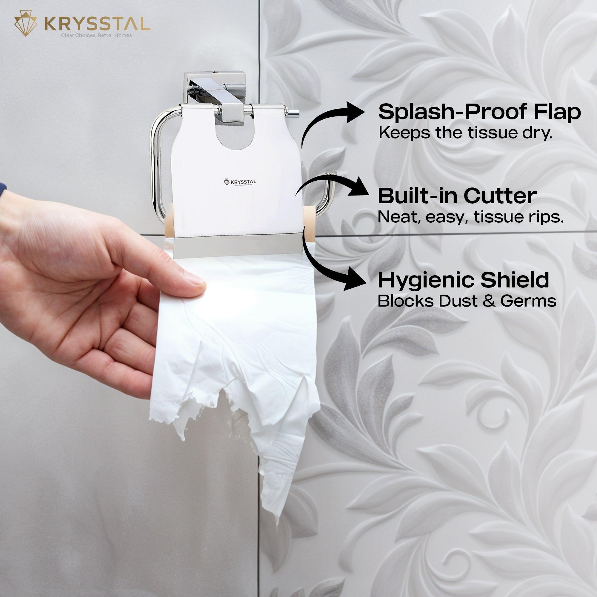 This square 304-grade stainless steel toilet paper holder is durable and rust-resistant with a sleek chrome finish. Its compact wall-mounted design saves space and keeps your bathroom tidy. Built strong to hold rolls securely, it features a protective flap with a built-in cutter for easy, clean tearing. Rounded smooth edges ensure safety while adding style.