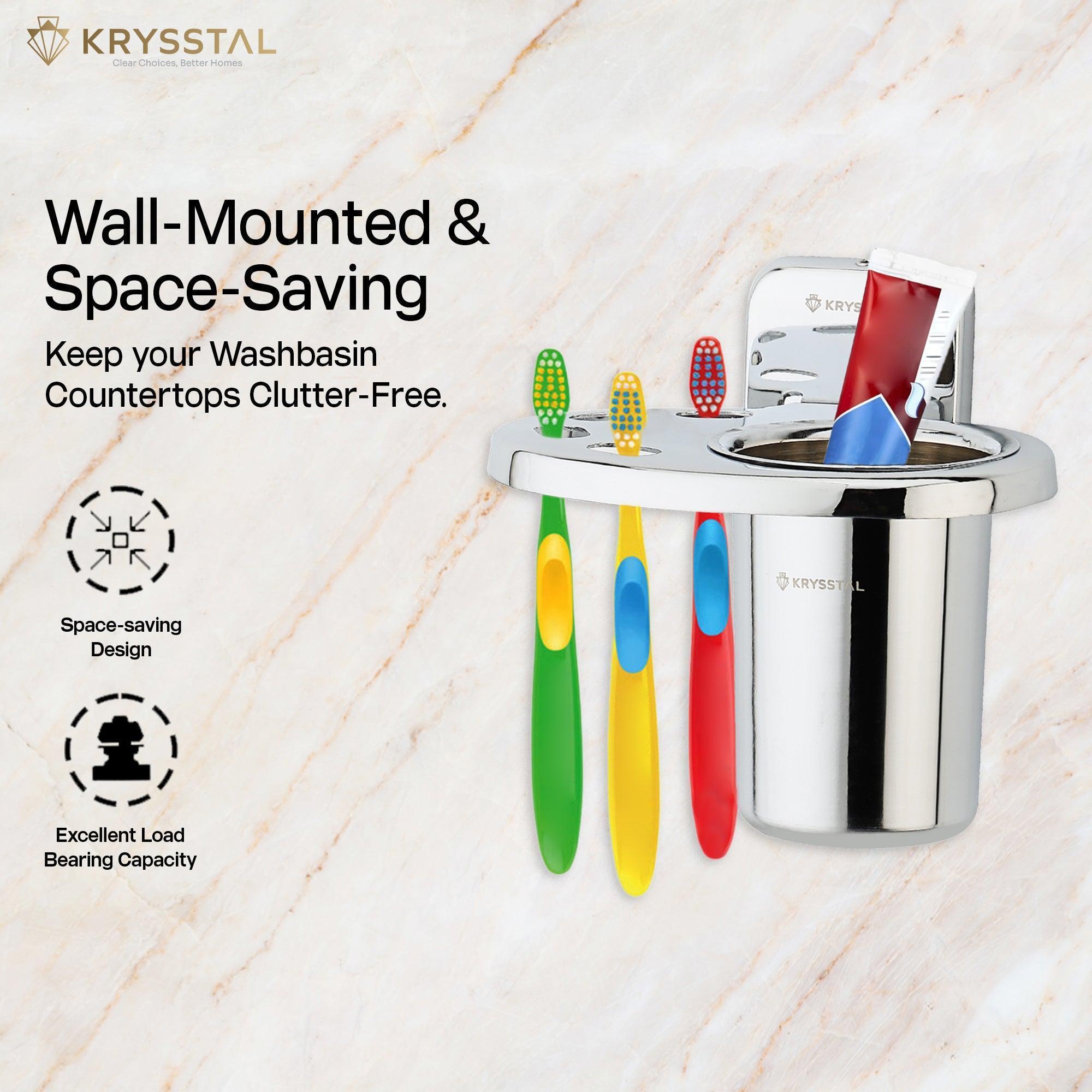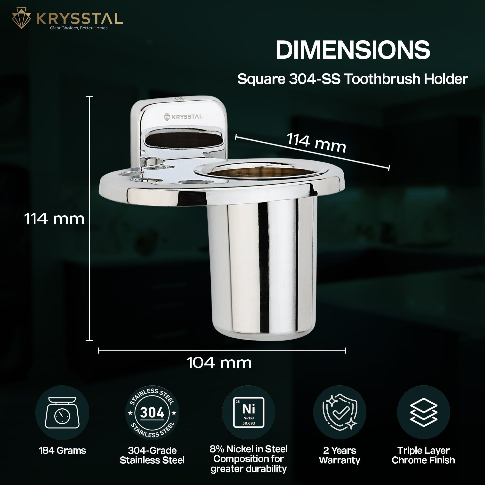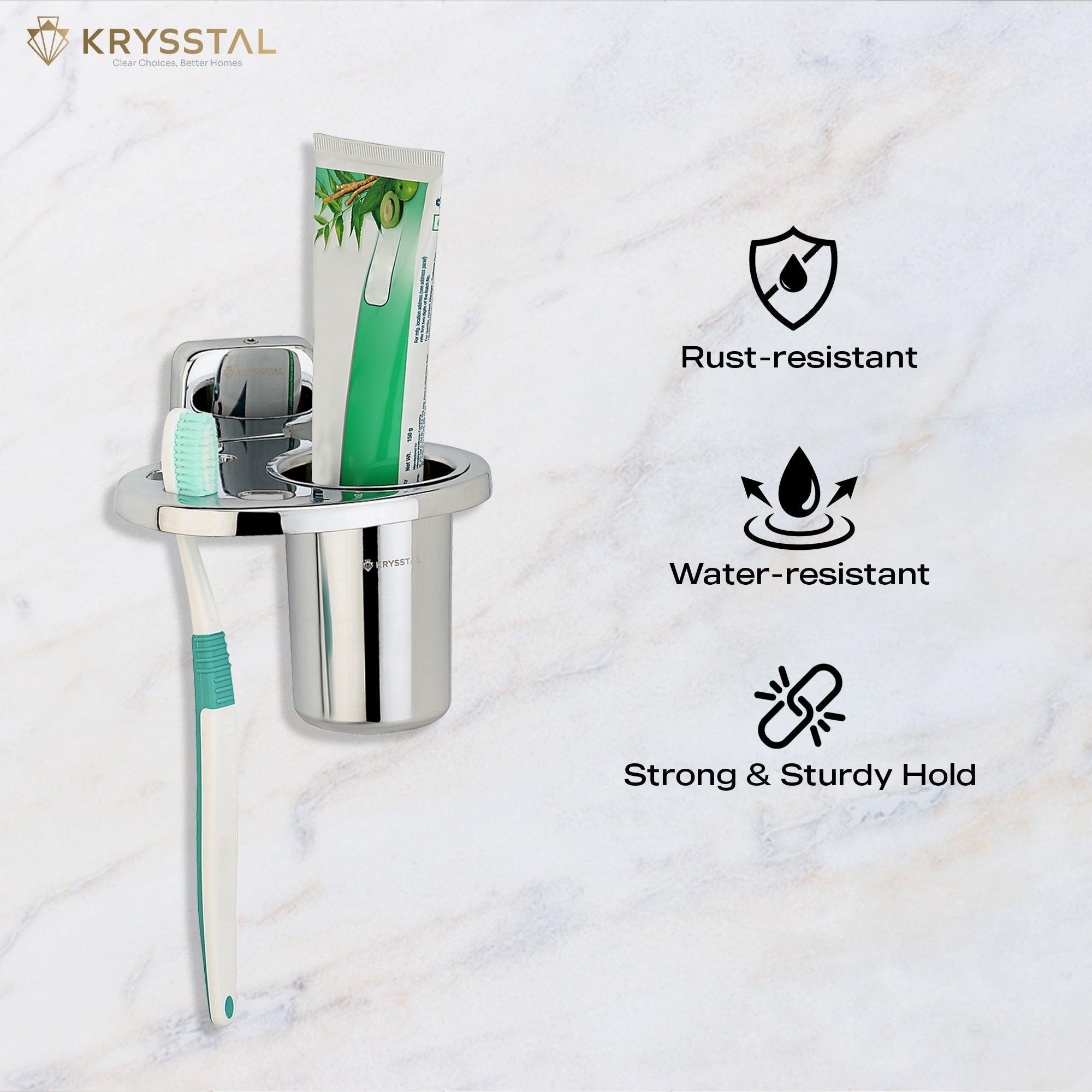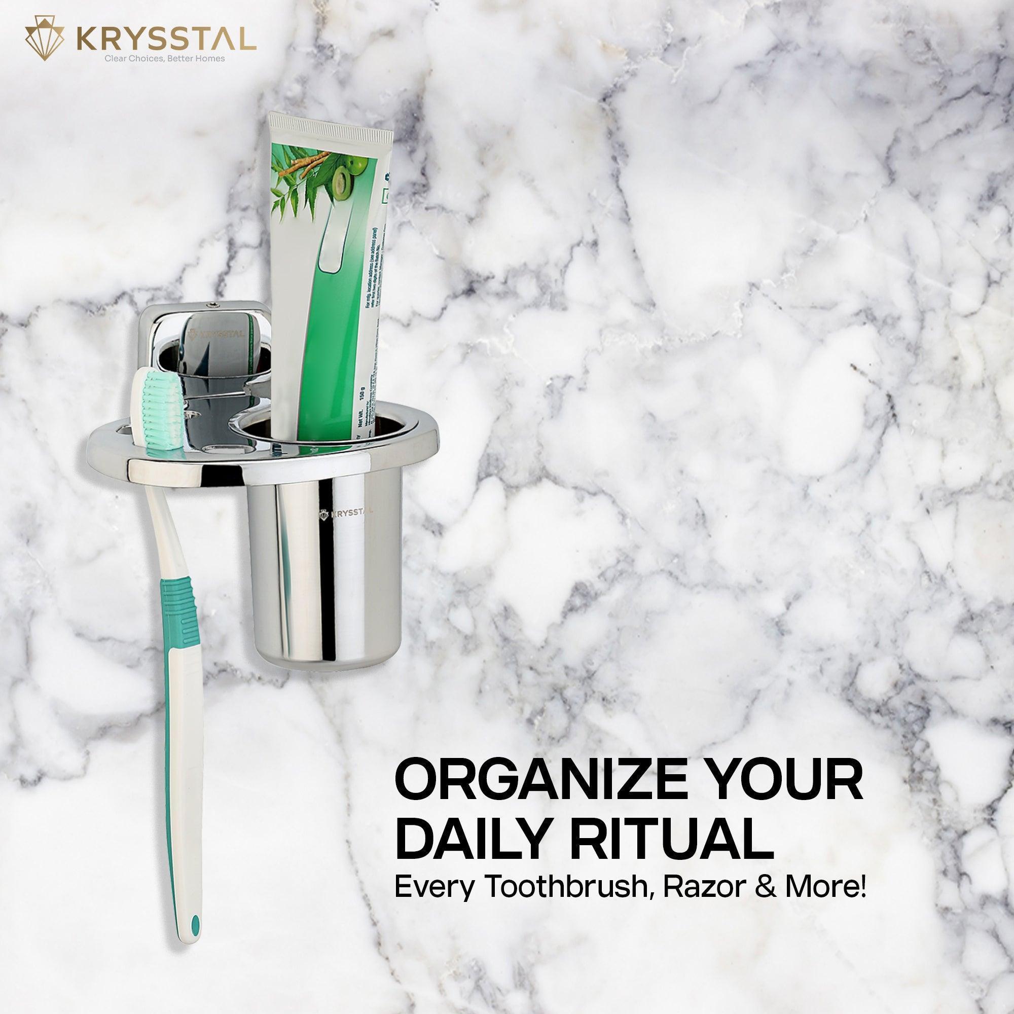 A. KRYSSTAL bathroom accessories are engineered from 304-grade stainless steel (SS 304), premium stainless steel, solid brass, high-strength ABS, and durable PVC—authentic raw materials chosen for rust resistance, strength, and long service life in wet Indian bathroom conditions.