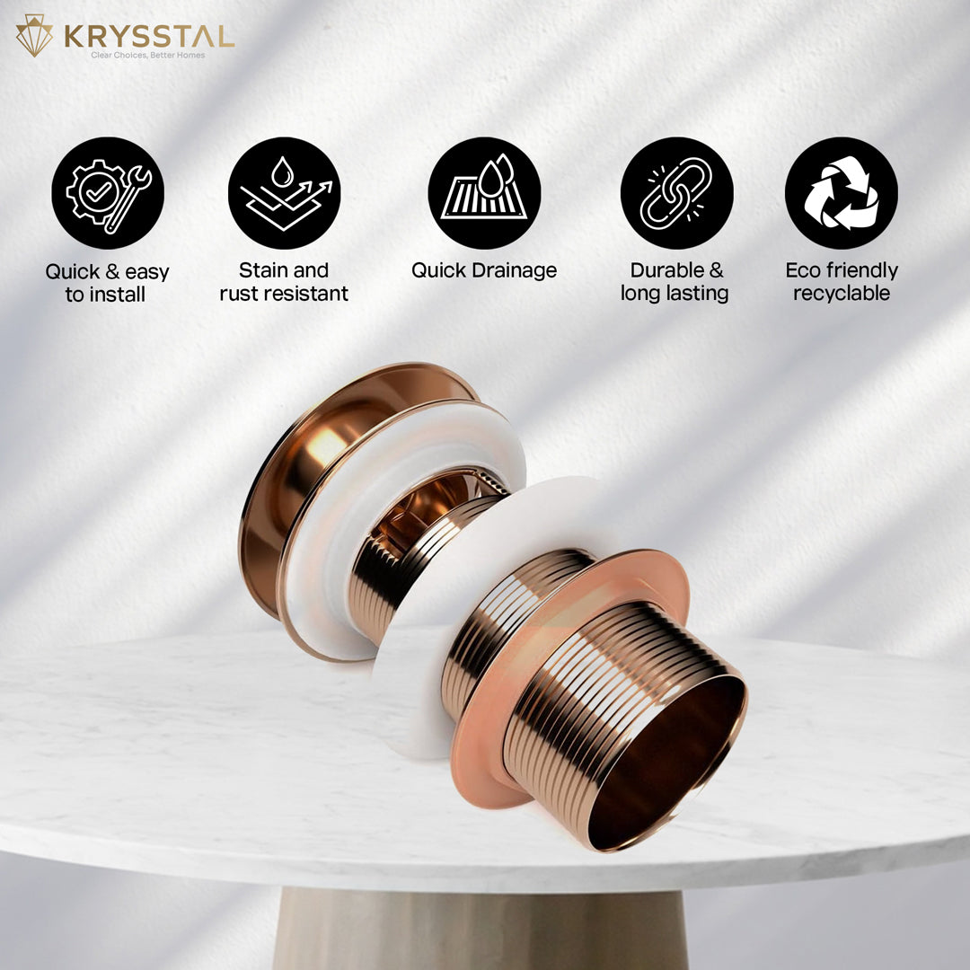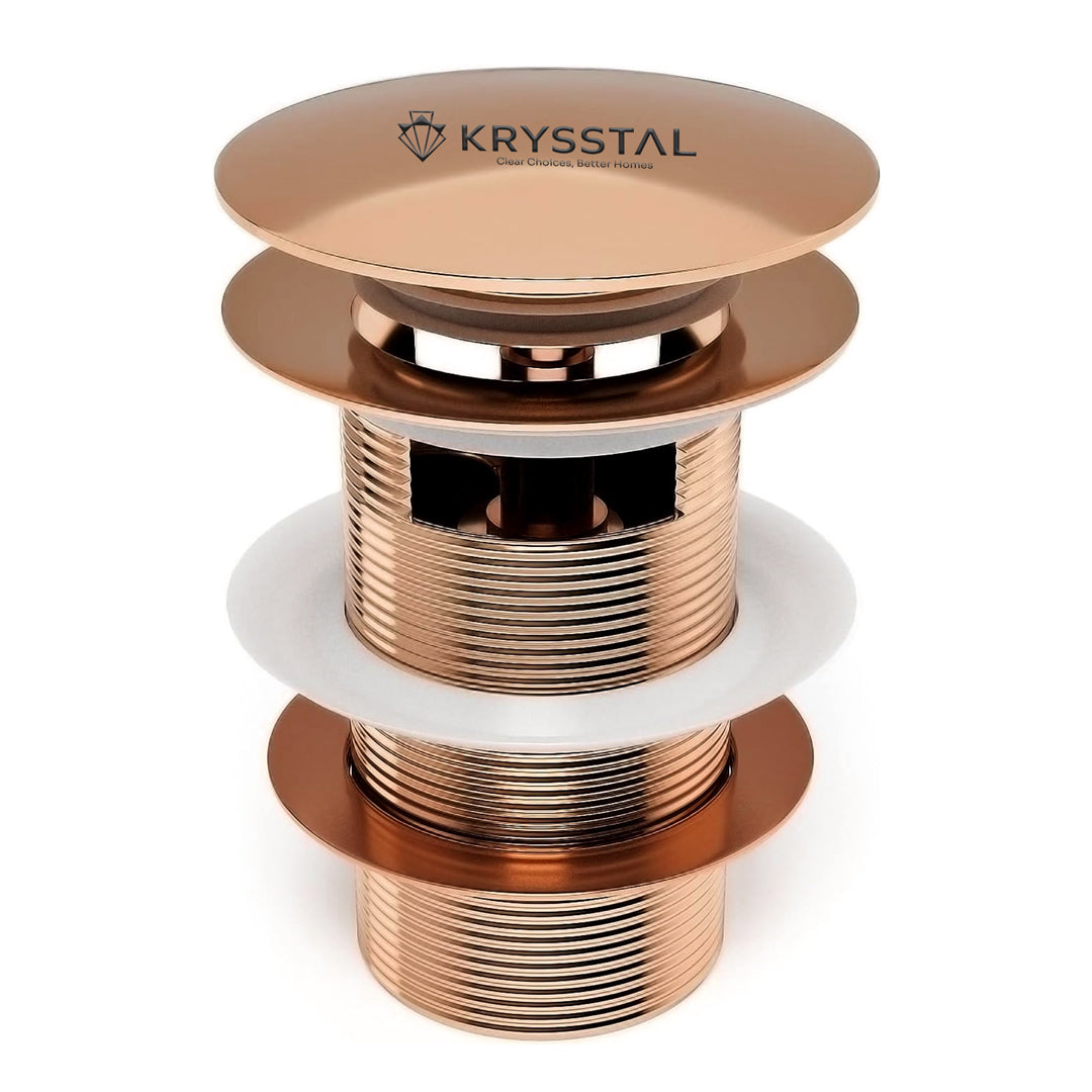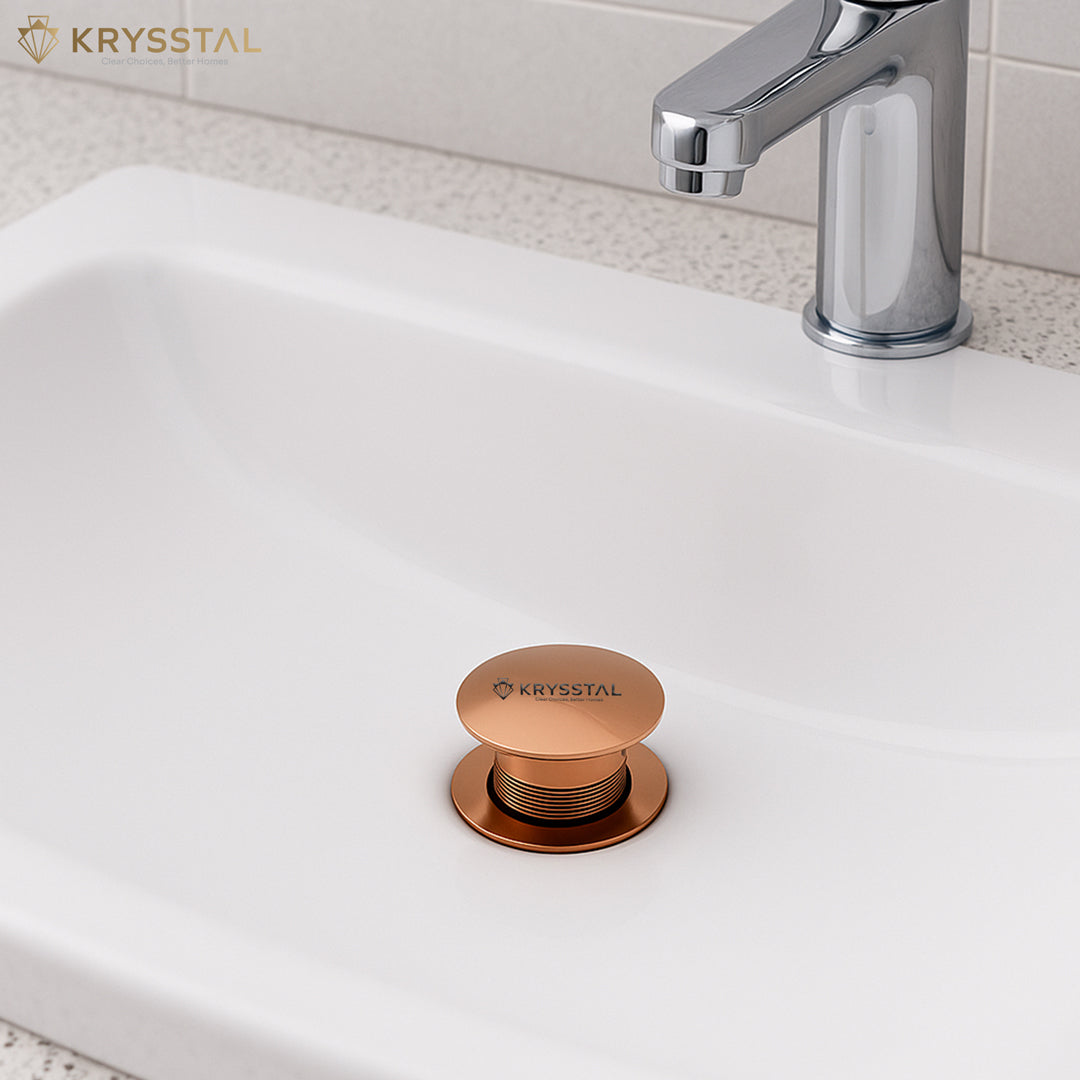 Most KRYSSTAL PVD pop-up waste couplings are 1¼" (≈32 mm, BSP)—a universal fit for standard bathroom sink waste holes in India.